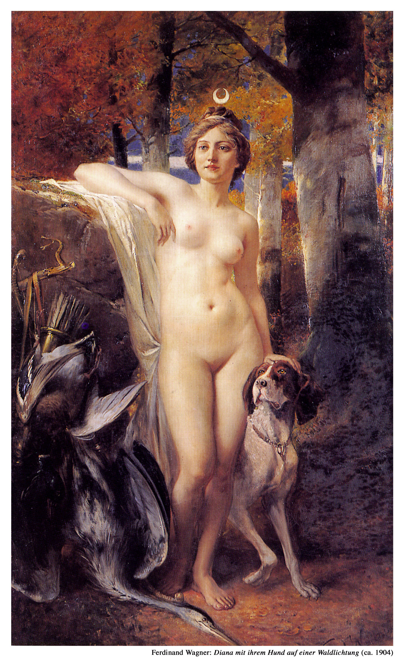 Diana mit ihrem Hund auf einer Waldlichtung (ca. 1904)